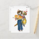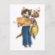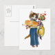 Cartão Postal Um gato fêmea com flores e presentes