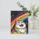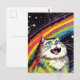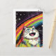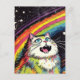 Cartão Postal Um Gato Fluffy Colorido no Espaço