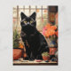 Cartão Postal Um lindo gato preto nas plantas domésticas