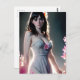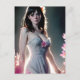 Cartão Postal Uma bela mulher com flores rosas longas e pretas
