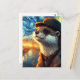 IA gerou arte de uma lontra em uma cidade noturna estrelada ao longo de um rio