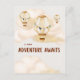 Cartão de Posto "Uma Nova Aventura Aguarda". Cores neutras para efeito calmante suave. Possui balão de ar quente e nuvens de água branca.