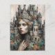 Uma mulher linda com um castelo na cabeça e ao redor do corpo para que você só possa ver seu rosto e uma mão