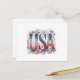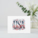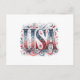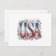 Considere este postal único dos EUA. Apresenta uma exibição decorativa de cores vermelha, branca e azul.