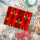 Um postal vermelho e festivo de unicórnio vermelho com um lindo padrão de faces unicórnicas, com chifres verdes, pálpebras verdes e bonito poinsettia vermelha em suas cabeças. Há mensagens ouros "Acredite" espalhadas à sua volta, num fundo vermelho vibrante. Uma saudação de Natal excelente para um amante de unicórnio.