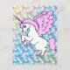 Unicórnio Branco, bonito, de cabelo e asas cor-de-rosa, com padrão de fundo Unicórnio em azul gradiente. Totalmente personalizável. O Grande Unicórnio pode ser movido e redimensionado.