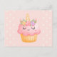 Cartão Postal Unicórnio de Cupcake Rosa Fofo com Rosas