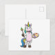 Cartão Postal Unicórnio pintando com pincel e cor