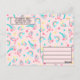 Cartão Postal Unicórnio Rosa Arco-íris Lua Estrelas Flores Anive