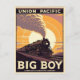• This vintage-style postcard showcases the legendary Union Pacific Big Boy steam locomotive, capturing the power and grandeur of America’s railroad history.