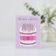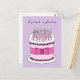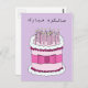 Um grande bolo de aniversário de desenho animado em cor-de-rosa e branco, contra um fundo mauve pálido. "Parabéns" está escrito em Urdu sob a imagem do bolo.