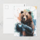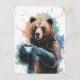 Cartão Postal Urso Castanho Cinto Com Aquarela De Café