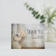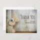 Cartão de agradecimento com uma fotografia encantadora de um urso de pelúcia fofo, em pé ao lado de uma parede / fundo de madeira rústica.