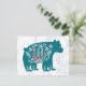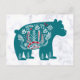 Cartão-postal Vintage Blue Nordic Bear. Um belo Urso Floral Azul Escandinavo sobre um fundo de mármore branco.