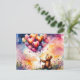 Cartão Postal Urso namorados de pelúcia com balões em forma de c