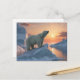 Este cartão postal apresenta um belo urso polar ao pôr do sol. Texto pode ser adicionado.