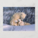 Cartão Postal Urso Polar Mãe Sentada com Gêmeos,