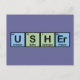 Esta design de diversão soletra a palavra USHER com elementos da mesa periódica! Quão legal é isso? Um design colorido para quem trabalha como motorista, especialmente se também tem interesse em química ou ciência! Você pode personalizar este presente! Mova a palavra ao redor, mude a cor ou o estilo de fundo, adicione texto ou imagens — faça dela sua!