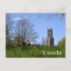 Foto de duas pessoas sentadas num banco num parque em Utrecht (Países Baixos), com vista à torre de Dom.