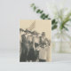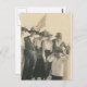 Esta é uma incrível fotografia antiga de um grupo de pessoas em frente à bandeira enquanto um menino usa binóculos.