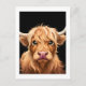 Cartão-postal de vaca bonito e castanho-preto - Arte escocesa para bovinos de Ricaso - trabalho de arte de uma vaca fofa e fofinha, com olhos cheios de alma