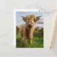 Uma jovem e amigável vaca escocesa Highland está se aproximando ao nascer do sol. Você pode até ver o olho dele que é tipicamente coberto por seu cabelo embaraçoso.