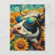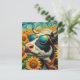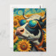 Cartão Postal Vaca em óculos de sol em campo de girassol