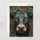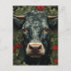 Cartão Postal Vaca nas Flores Vermelhas