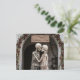 This unique Valentine's Day card features a romantic and whimsical illustration of two skeletons locked in a tender kiss, symbolizing a love that lasts beyond this life.