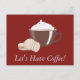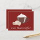 Convide um amigo para um café com este encantador café burgundy temido cartão-postal. Exibindo uma xícara de café com biscoitos em fundo vermelho, "Vamos Tem Café" é escrito em branco em itálico. Peça o seu hoje! Trabalho de arte criado por: AMBilustrações http://www.etsy.com/shop/AMBillustrations/