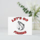 Vamos pescar com um peixe saltando da água com texto ao redor