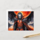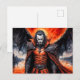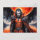 vampiro se posiciona em uma paisagem escura e sombria sob uma lua vermelha, com morcegos voando e castelos ao fundo.