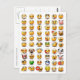 Variações de um emoticon facial, algumas das quais são as seguintes: feliz, bravo, triste, zangado, sorridente, sorridente, surpreso, ouvindo música, Drácula, palmas, pirata, aplausos, apaixonado, uni-olho, polegares para cima, polegares para baixo, cansados, confusos, dormindo, shh, falando ao telefone, envergonhado, assobio, mau, doente, e assim por diante.