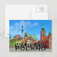 Lembrança que apresenta uma ideia icónica do quadrado do castelo na área velha da cidade de Varsóvia, Polônia.