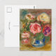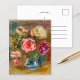 Vaso de Rosas (1913-1915) | Obra original do artista impressionista francês Pierre-Auguste Renoir (1841-1919). A pintura de arte fina retrata uma natureza-morta impressionista abstrata de rosas cor-de-rosa em um vaso azul contra um fundo sombrio.