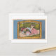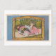 Este cartão-postal é uma reprodução de um cartão-postal engraçado vintage mostrando um veado dirigindo um carro com dois caçadores no capô, uma reversão da situação habitual na caça aos veados.