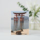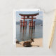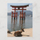 Cartão postal do Shrine de Itsukushima, em Miyajima, Japão, com veado em primeiro plano.