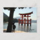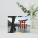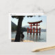 Cartão postal do Shrine de Itsukushima, em Miyajima, Japão, com veado em primeiro plano.
