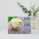Cartão Postal Vegan "Live and let live" com pintinho fofo