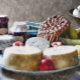 Comida de fazenda da década de 1800, queijo, maçãs, moitas, conservas e pão-comum. Aquarela. England UK. com
