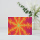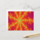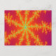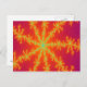 Este cartão postal de cor brilhante apresenta uma imagem fractal que lembra uma tempestade violenta em Vênus. Ele tem um fundo laranja brilhante com linhas amarelas brilhantes saindo do centro que se parecem com raio queimando. No centro de cada raio há uma linha azul que me lembrou de uma veia que resultou no título "Venous Thunderstorm".