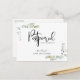 Tem que adiar seu casamento? sem problemas, deixe a família e os amigos saberem a mudança de planos com este elegante cartão postal. Frente com uma elegante cor d'água pintada em verde floral contendo cartão postal e a palavra adiada em tipografia moderna escrita à mão. Flores e folhagem em delicados tons verdes, azuis, marinhos e cobre. Volte com a área para a sua mensagem e o detalhe da folhagem floral de canto. Sinta-se à vontade para trocar a mensagem de acordo com as suas necessidades. Capacidade de receber mensagens do casal aos amigos e familiares ou dos pais aos seus convidados. Os detalhes de tipografia manuscritos também no verso. Sentimento romântico moderno elegante. Cartaz conveniente, menos desperdício, menos incômodo. Também disponível no estilo do cartão.