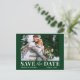 Modern Trendy Salve o Cartão-postal de data com script de bloqueio e combinação de script de caligrafia. Forest Green.