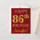 Cartão Postal Vermelho, Falso Aniversário de 86 anos Dourado + N