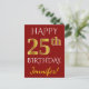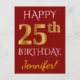 Cartão Postal Vermelho, Faux Dourado 25 Birthday + nome personal