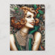 Cartão Postal Vestido Verde da Mulher Flapper de Natal maravilho