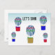 Um legal design com cinco balões de ar quente listrados e coloridos a voar pelo céu. O ditado "soar de vamos" pode ser alterado como desejado.