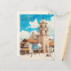 Um cartão-postal viagem lindo ilustrado de Cusco, peru, mostrando a icônica Plaza de Armas com sua incrível arquitetura colonial, ruas de pedra calcária e atmosfera viva. A peça central é uma igreja histórica de pedra, com uma intrincada torre de sino, rodeada por edifícios charmosos, com balcões de madeira e apartamentos coloridos. Céus azuis brilhantes, nuvens espalhadas, e vida de rua arrebatadora trazem a cena à vida, evocando o espírito desta cidade do patrimônio mundial.