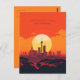 Este viagem mostra uma ilustração serena e quente representando Nairobi skyline com arranha-céus ascensão atrás da selva trópica durante um pôr do sol que respira. É um cartão postal de excelente para os viajantes que planejam visitar Nairobi ou para aqueles que viajaram Nairobi e enviaram um cartão postal para a sua família ou amigos.