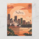Este viagem mostra uma ilustração serena e quente representando a linha do horizonte de Sydney com a Ópera de Sydney. É um cartão postal excelente e romântico para os viajantes que planejam visitar Sidney ou para aqueles que viajaram por Sydney e enviaram um cartão postal à sua família ou amigos.